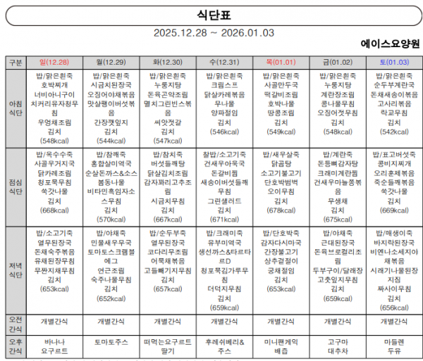 - 이전글1월 2주 주간식단표 26.01.05