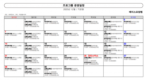 12월 프로그램 일정 입니다.
