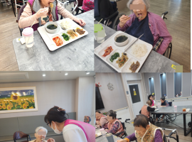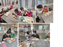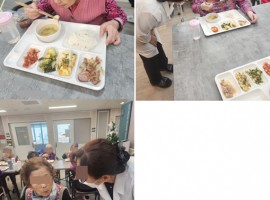 오늘 중식으로 잔치국수와 새우까스 등 맛있는 식사가 제공되었습니다. 어르신들께서 특히 국수를 매우 좋아하시며 즐겁게 드셨..