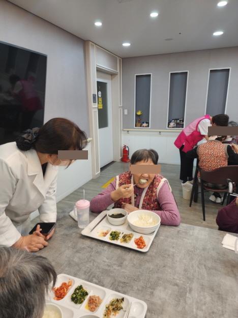오늘은 생신잔치를 맞아 특별히 미역국도 제공되었고, 어르신 맞춤식으로 죽, 다진 찬, 미음, 갈찬 등으로 준비됩니다.