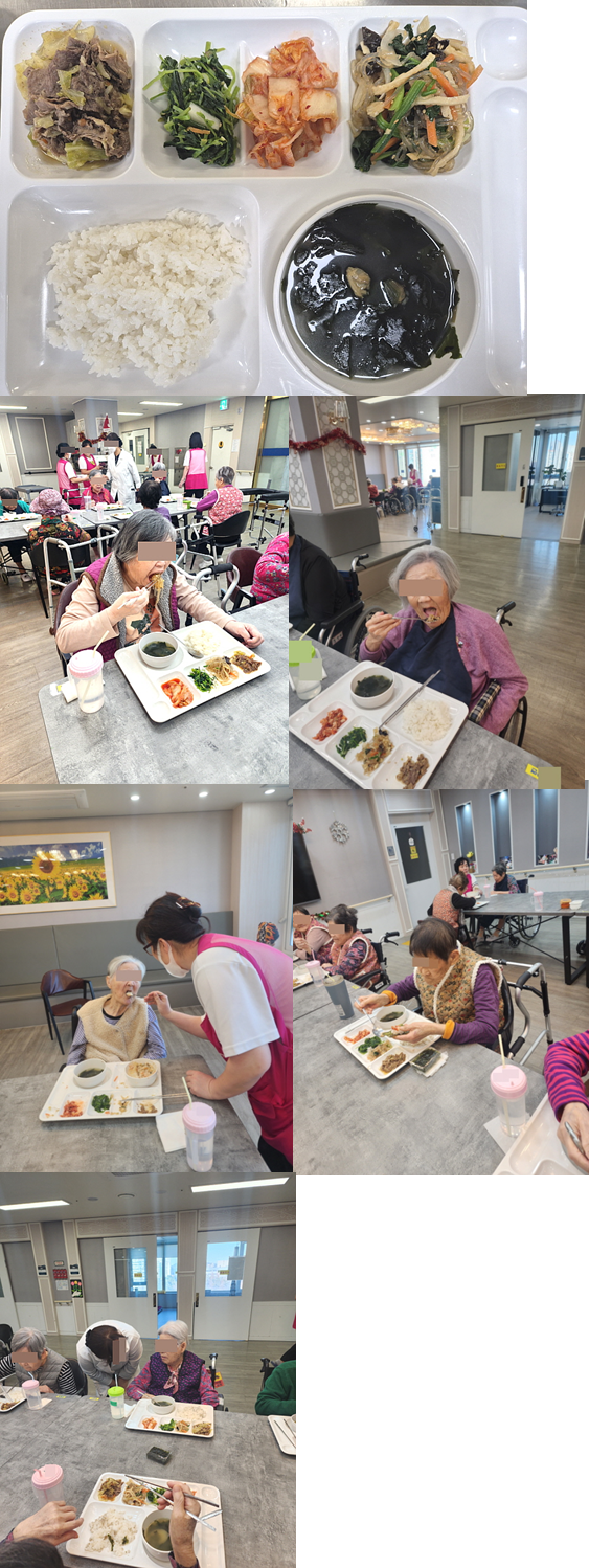 요양보호사 선생님과 함께 맛있게 드시는 모습이 보기 좋았습니다.