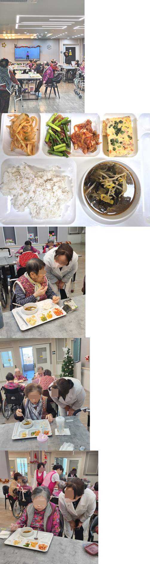 어르신들은 감자탕과 계란찜을 맛있게 드시며 즐거워하셨습니다.