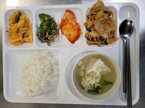 오늘의 중식 메뉴는 밥/크래미죽, 맑은순두부국, 제육볶음 등으로 준비되었어요!