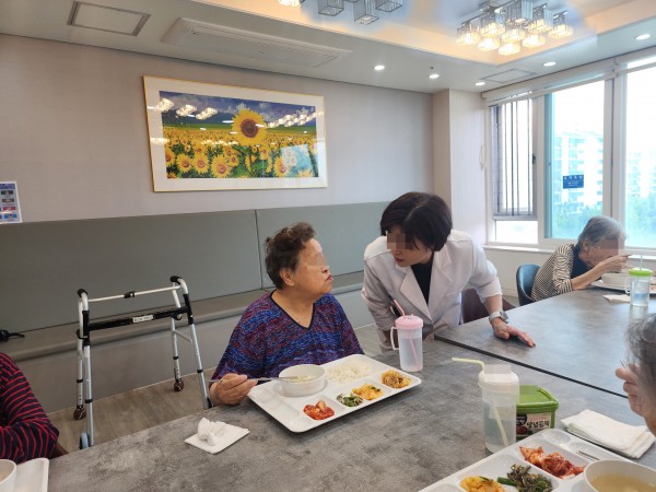 영양사 선생님께서 어르신들께 메뉴를 설명해드리며 식사 상황도 살펴주셨답니다~