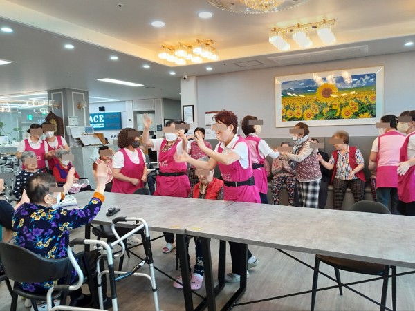 어르신들과 요양보호사 선생님들이 함께 어우려져 즐거운 시간을 가졌습니다.