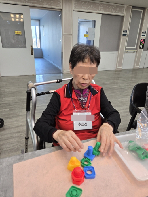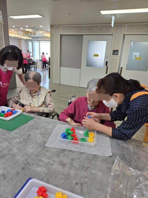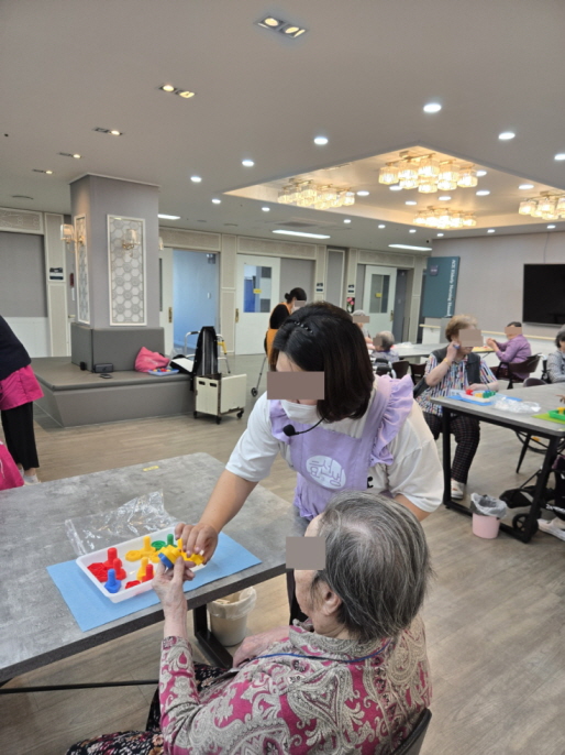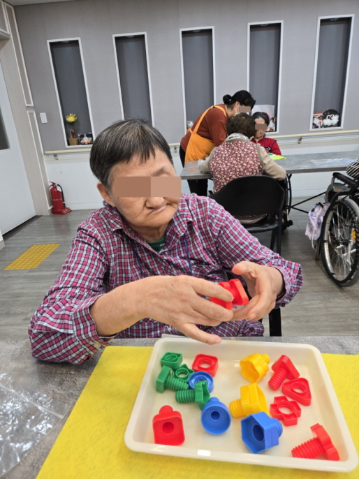 어르신들과 알록달록 너트를 살펴보며 즐겁게 두뇌운동을 했습니다.