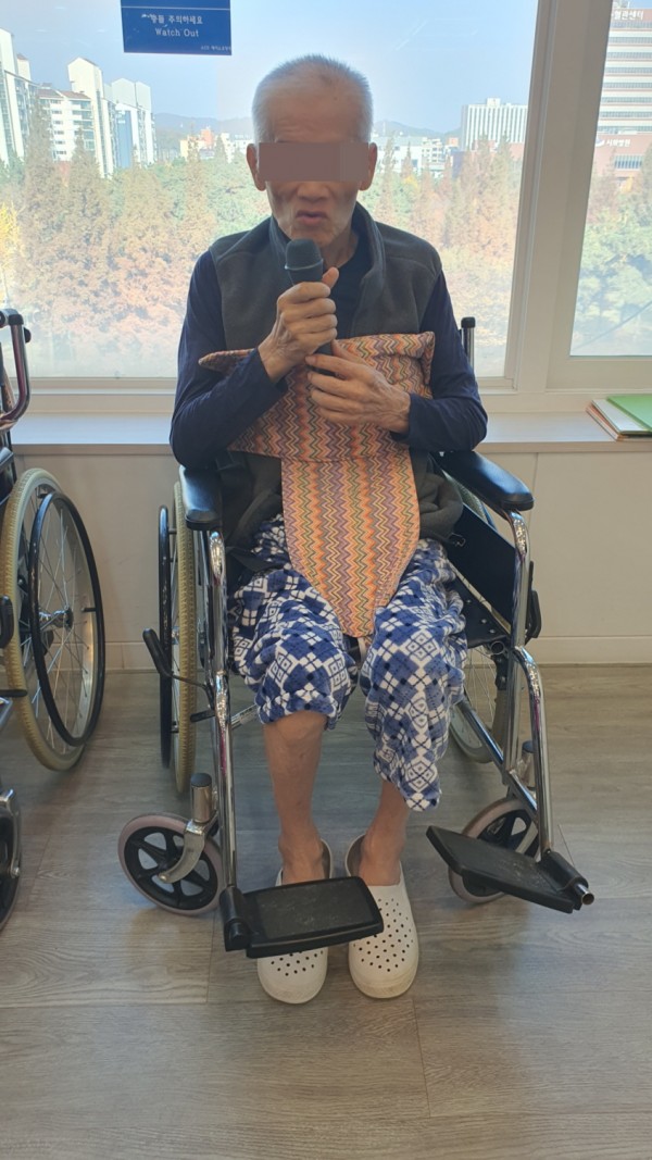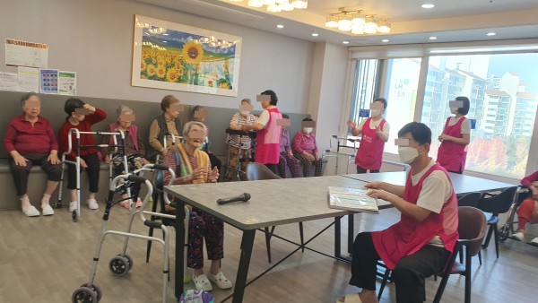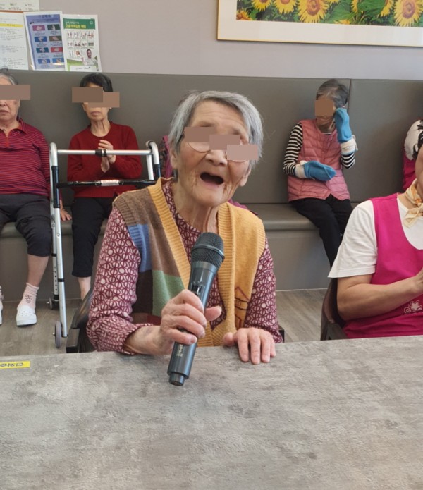노래를 부르며 어르신들의 호응과 미소를 이끌어냈습니다.
