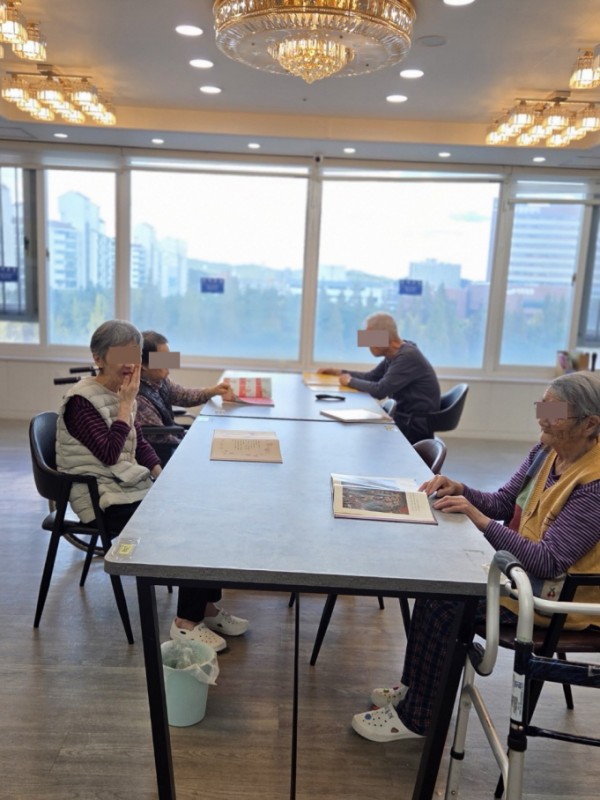 선생님들이 어르신들 곁에서 부드럽게 동화를 읽어드렸습니다.
