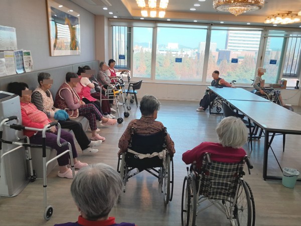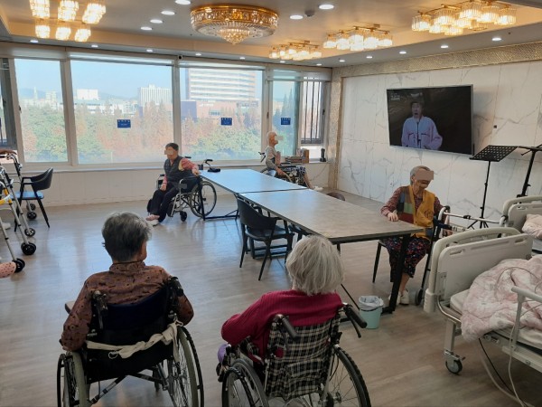 영상을 재생하며 어르신들이 편안하게 즐기실 수 있도록 도왔어요.