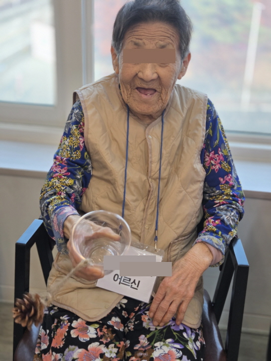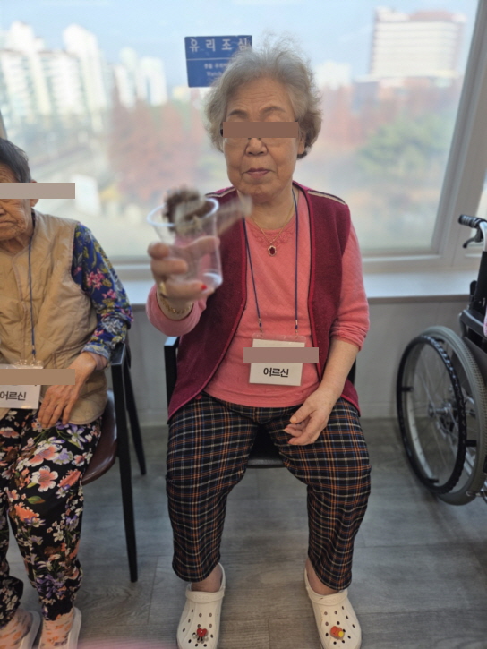 어르신들과 솔방울을 가지고 즐거운 활동을 했어요.