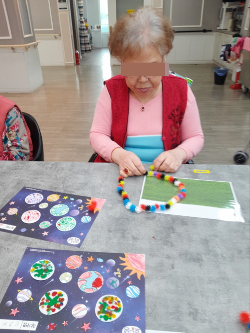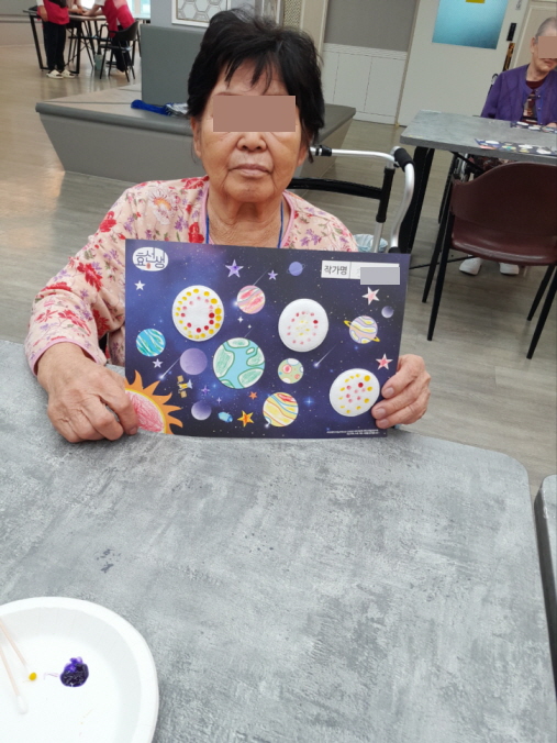 화장솜에 색을 섞어 나만의 행성을 만들어 보는 시간도 가졌어요.