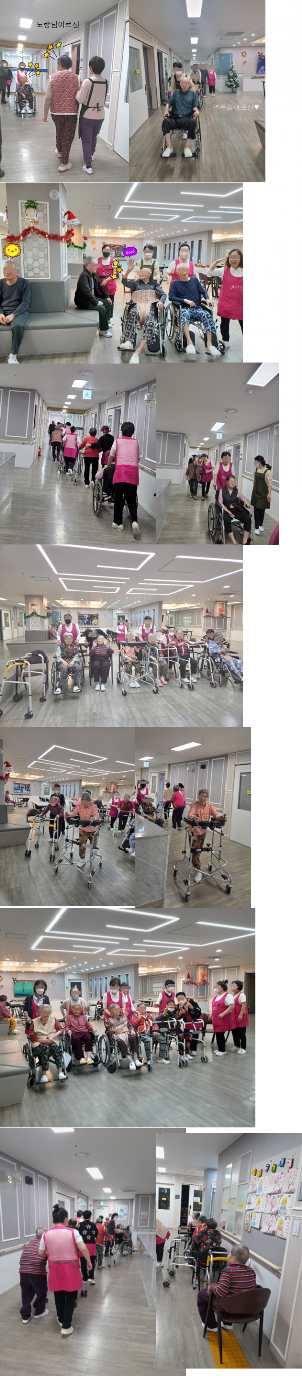 요양선생님의 인도로 함께 걸으며 담소를 나누셨어요.