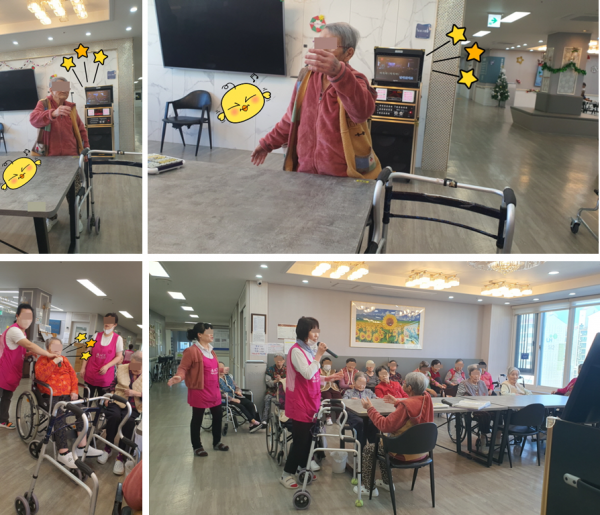 익숙한 노래로 어르신들의 활력과 즐거움을 이끌어냈어요.