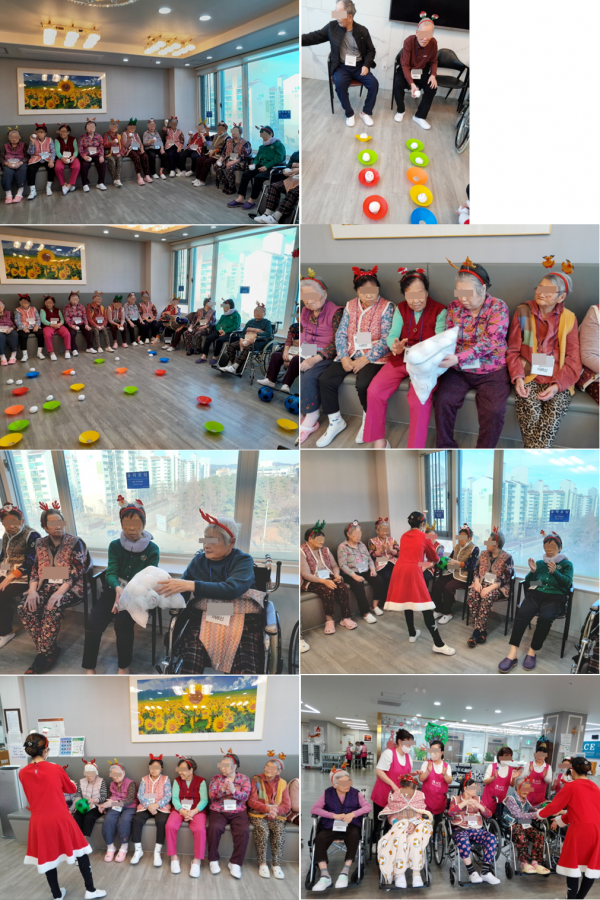 크리스마스 캐롤에 맞춰 힘뇌체조로 몸을 풀며 근육을 이완했습니다.