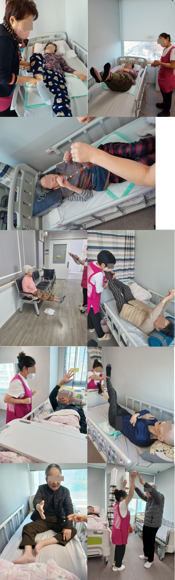 상지, 하지, 체간 운동을 신나게 따라 하시며 활력이 넘쳤어요.