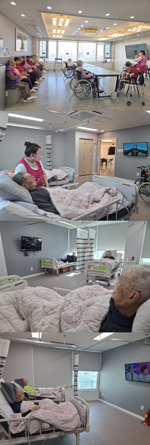 어르신들께서 집중해서 시청하시고, 율동 장면에서는 즐겁게 따라 하셨습니다.