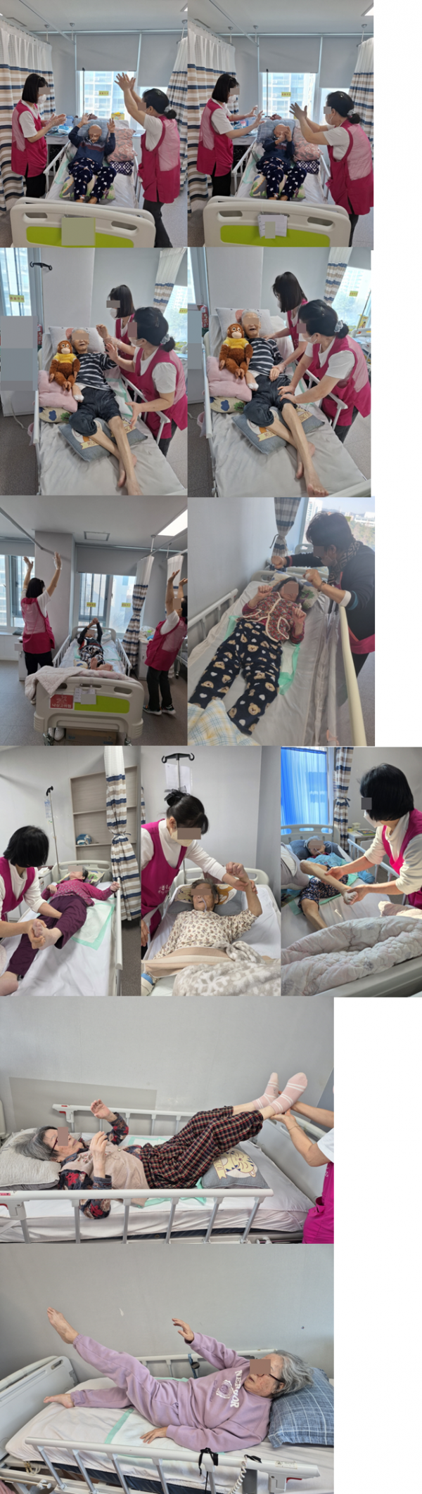 상지, 하지, 체간 순으로 어르신 상태에 맞춰 체조를 도와드렸습니다.