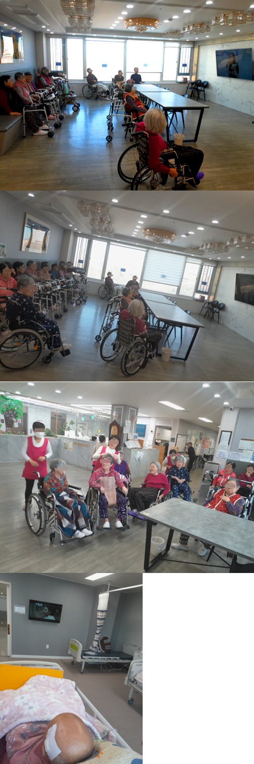 영상을 재생하며 즐겁게 감상할 수 있도록 도와드렸고, 거동이 어려우신 어르신들은 생활실에서 개별적으로 감상하셨습니다.