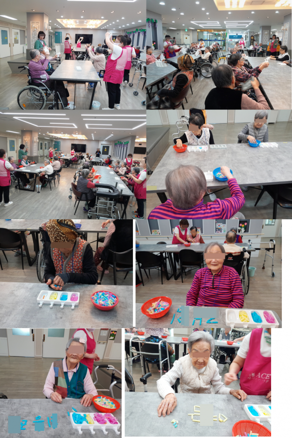 약방에서 약을 지어주듯 순서대로 빨대를 담아보며 집중력도 함께 높였습니다.