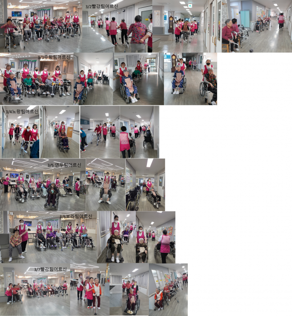 어르신들과 매일 아침 요양원 복도를 한 바퀴 도는 산책을 했어요.