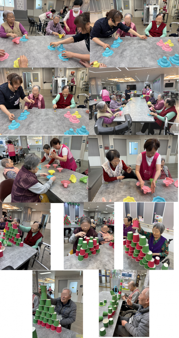 소주컵과 종이컵을 활용해 다양한 방식으로 쌓기 놀이를 해보셨어요.