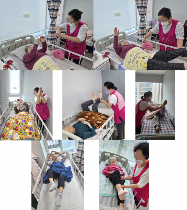 어르신들의 상태에 맞춰 체조와 스트레칭을 진행했어요.