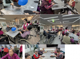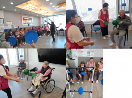 구멍이 뚫린 파라슈트로 공을 굴리며 즐거운 놀이 시간을 가졌습니다. 공을 주고받으며 어르신들의 고향 이야기를 나누어 웃음..