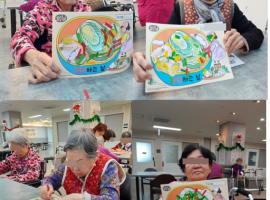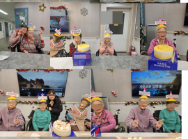 12월 생신잔치를 어르신들과 함께 즐겁게 진행했어요. 생신 어르신들은 자리에 앉아 축하 모자를 쓰고 축하를 받으셨어요. ..