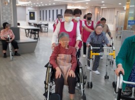 노랑팀 어르신들의 아침 산책 시간입니다. 복도를 따라 한 바퀴 걸기만 해도 활력이 생깁니다. 생활실 어르신들과 눈인사를..