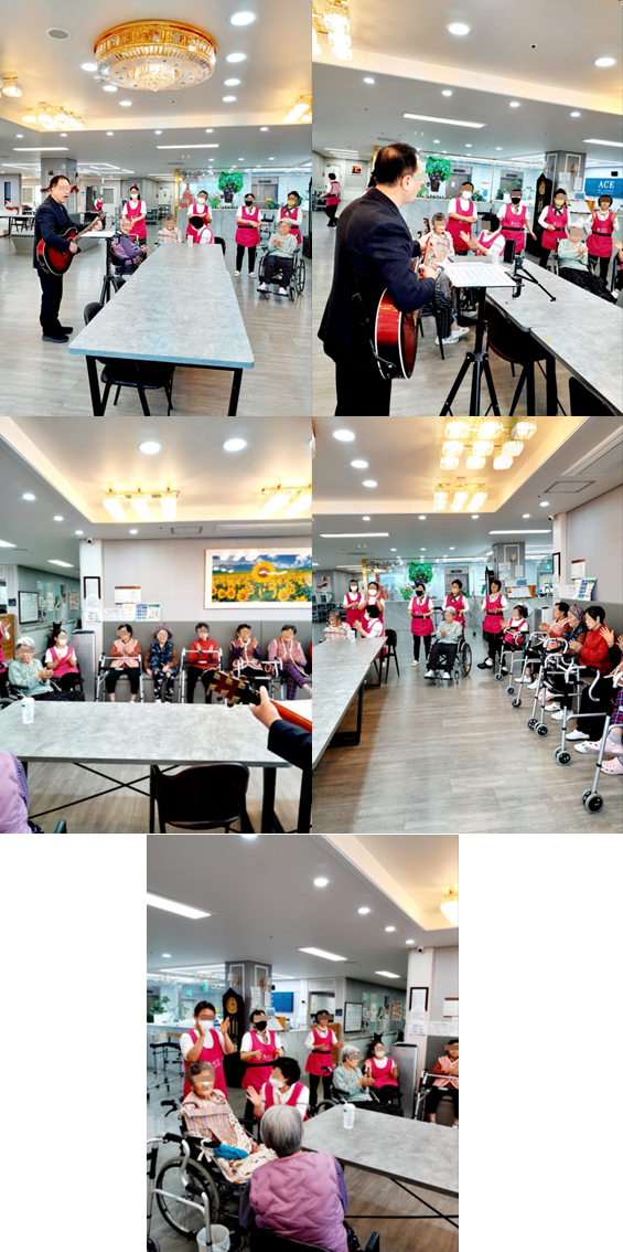 목사님이 방문하셔서 어르신들과 함께 노래와 찬양을 부르셨습니다.