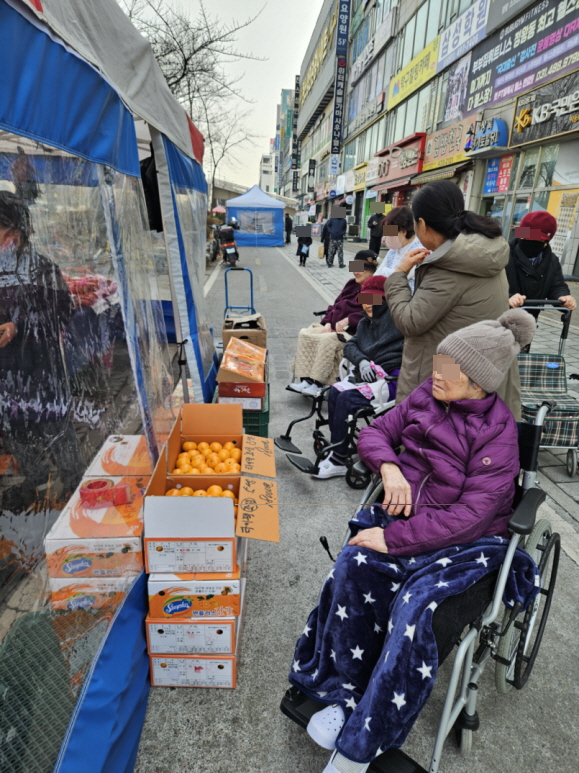 요양원 바로 앞 길에서는 5일장이 열립니다.
