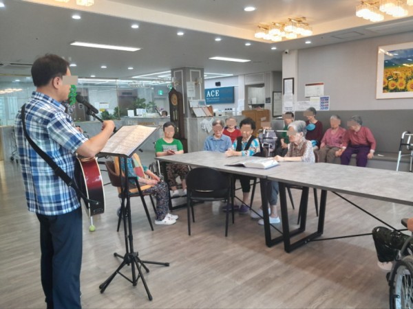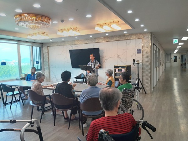어르신들과 함께 동요, 가곡, 찬송가 등 다양한 음악을 들려주시며 따뜻한 시간을 나눠주십니다.